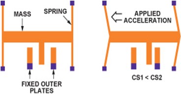 سنسورهای شتاب به سه دسته پیزوالکتریک، پیزو رسیستیو و خازنی تقسیم بندی میشوند. از مزایای سنسورهای شتابسنج پیزوالکتریک میتوان به محکم بودن در برابر ضربه و مناسب برای کاربردهای فرکانس بالا اشاره کرد. سنسورهای شتاب سنج پیزومقاومتی که strain gauge نیز نامیده میشوند در فرکانسهای بالا محدودیت داشته و مکانیزم کاری آنها نیز به گونه ایی است که وقتی به یک جسم کرنش وارد میشود منجر به تغییر مقاومت الکتریکی سنسور گشته و با اعمال ضریب میتوان ارتعاش را محاسبه کرد. دسته دیگر از شتابسنج ها متعلق به سنسورهای خارنی بوده و ساختمان داخلی آنها از صفحات ثابت و صفحات مرتعش تشکیل شده و مکانیزم کاری نیز بر مبنای تغییرات ایجاد شده در ظرفیت خازنی می باشد. مفهوم تغییرات ایجاد شده نیز به این معنا است که وقتی لرزشی در تجهیز مورد نظر اتفاق بیافتد، جسم مرتعش شروع به حرکت کرده و به دنبال آن تغییراتی در ظرفیت خازنی بوجود میآید. عملکرد سنسور MEMS در شکل آورده شده است.