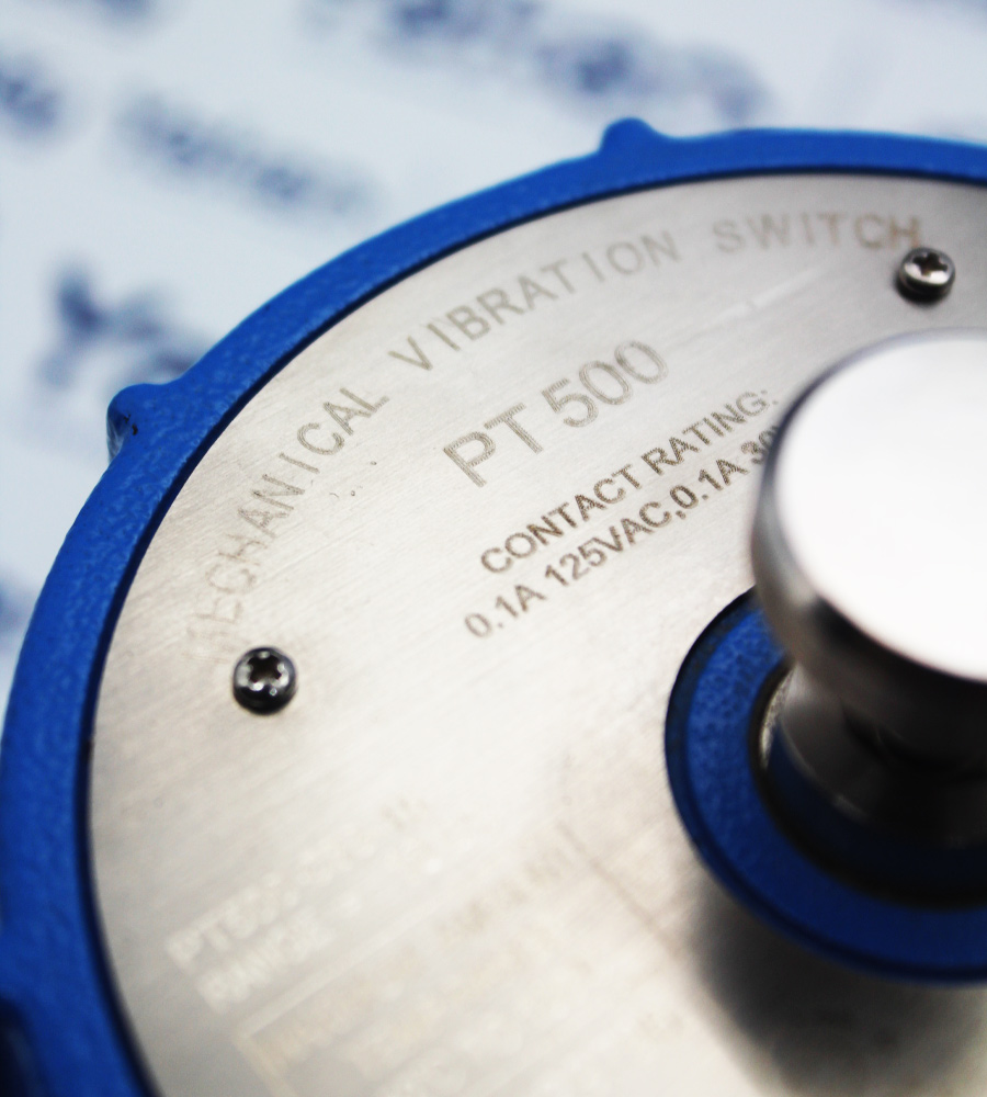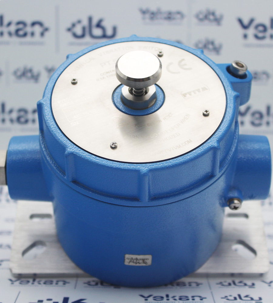 سوئیچهای لرزش مکانیکی Mechanical Vibration Switches) PT500) متعلق به شرکت پیویتیویام (PVTVM) بوده و ساخت کشور آمریکا می باشد. سوئیچ مکانیکی ارتعاش PVTVM مدل PT500 جهت حفاظت از ماشین آلات دوار مثل ماشین های رفت و برگشتی (Rotating and Reciprocating Machines)، کمپرسورها (Compressors) و پمپها (Pumps) مورد استفاده قرار میگیرند. مکانیزم کاری این مدل سوئیچها براساس جرم – فنر (Mass–Spring System) بوده و به همین دلیل مناسب کارکرد در فرکانسهای پایین میباشد. یکی از موارد پر استفاده از این سوئیچها در برجهای خنک کننده (Cooling Tower) صنایع است. سوئیچهای مکانیکی مدل PT500 پیویتیویام براساس شتاب لرزش کار میکنند. این سوئیچ درنجهای 5g، 2g و 10g وارد بازار شده است، جهت انتخاب Full Scale مناسب به دیتاشیت مراجعه گردد. از لحاظ محدوده فرکانسی نیز تا 60 هرتز عمل میکنند. مشخصات کنتاکت های ویبرشن سوئیچ مکانیکی مذکور می تواند SPDT یا 2SPDT باشد. از ویژگیهای این تجهیز میتوان به داشتن گواهی ATEX اشاره کرد، بزرگترین عیب سوئیچ ویبره PT500 در این است که سازنده پیچ تنظیم را internal لحاظ کرده است در حالی که در سوئیچهایی ارتعاش مکانیکی مثل MS60 پیچ تنظیم روی بدنه تجهیز تعبیه شده تا کارشناس فنی به راحتی setpoint را تنظیم کند. نمایی از سوئیچ لرزش PT500 در شکلهای زیر نمایش داده شده است.